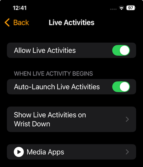 - You can also enable ‘Auto-Launch Live Activities’ here so that your Apple Watch automatically launches them when the live activity begins on your iPhone