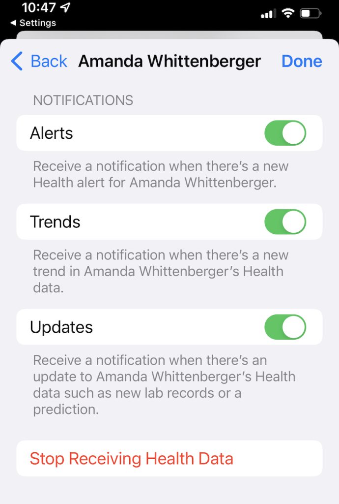 Here is how you can set up a notification for your loved ones’ health data changes: