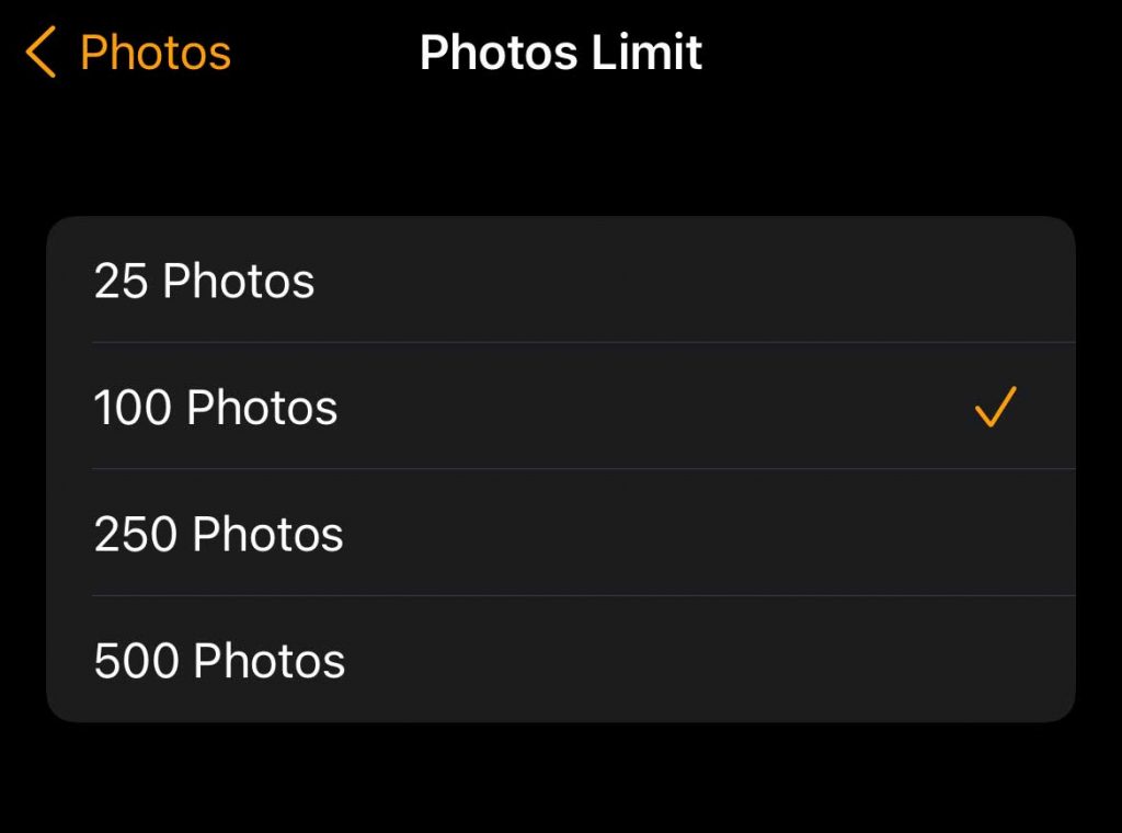 Additionally, you may have limited the maximum number of photos you watch stores. At this time, your watch can store between 25 and 500 photos, but you set that maximum.