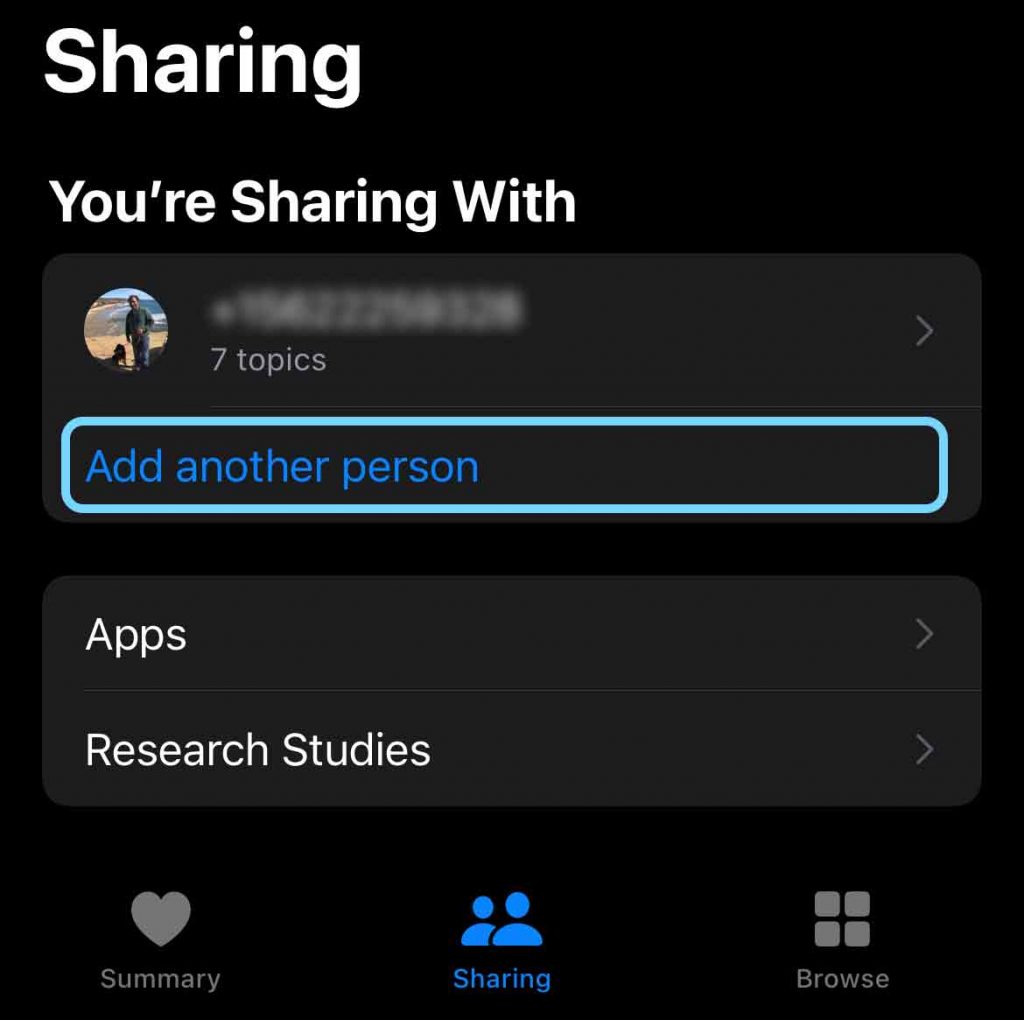 Just follow the steps above. In your Health app, select the Sharing tab, and under You’re Sharing With, choose to Add another person.