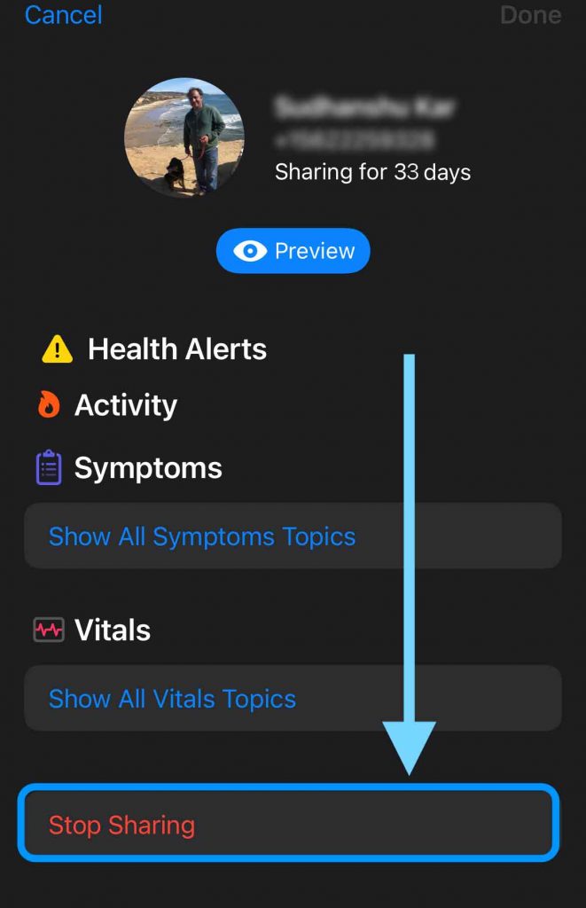 - Under Sharing With You, choose the person you no longer want to receive health information from.