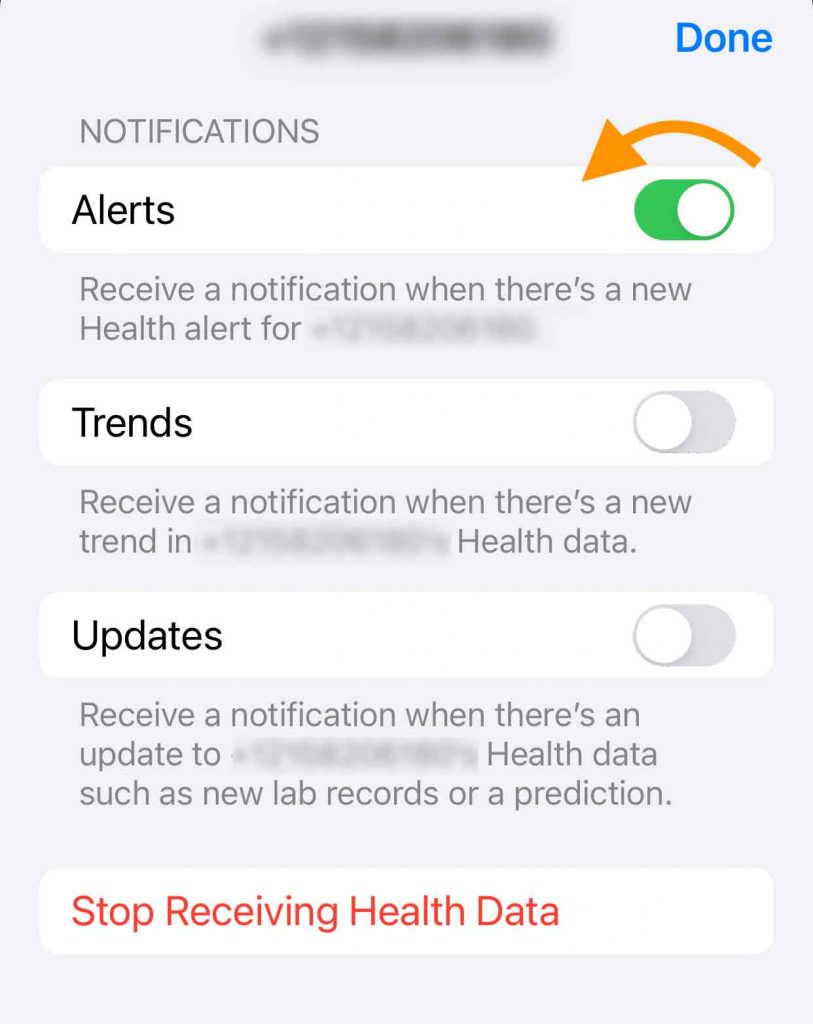 If you want to stop receiving your health notifications, trends, or updates but still want to see that person’s health data on your iPhone, you can change these settings.