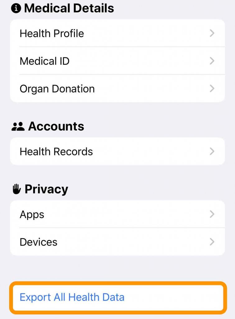 Sharing health data using these older iOS versions allows you to export your health data as an XML file and then share that file. While XLM isn’t a common format for most individuals, it is a well-known and used format for sharing data between apps.