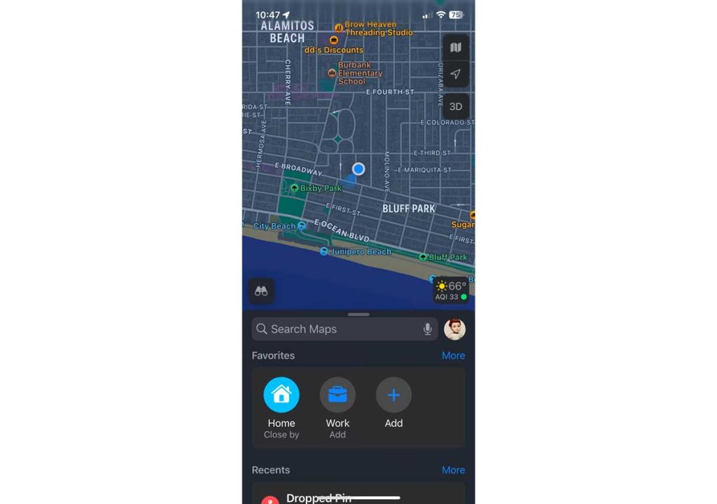 - Open Apple Maps, select the Search Maps section and swipe up to show the list of options.