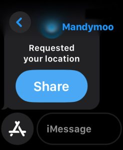 Just like your iPhone, the Apple Watch’s Messages app in watchOS 10+ helps you quickly send your current location or ask someone else to send their location.
