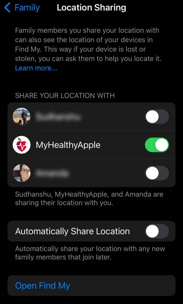 The downside is that this works best between Apple devices and doesn’t consistently share location information if your family member or friend uses an Android device.
