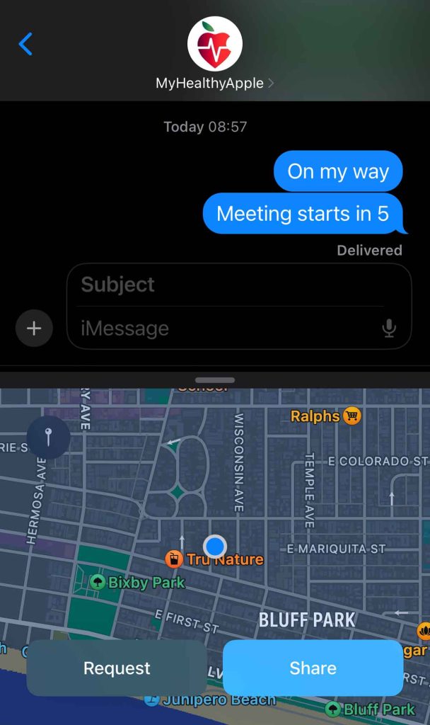 What I love about Apple’s location sharing is that your can now share your location or request someone else’s location, all from the Messages app.