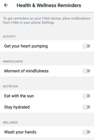 If you are not seeing the ‘health and wellness reminders’ option on your app, try to update your Fitbit to the latest software, restart your Versa, and check if it shows up in the app.