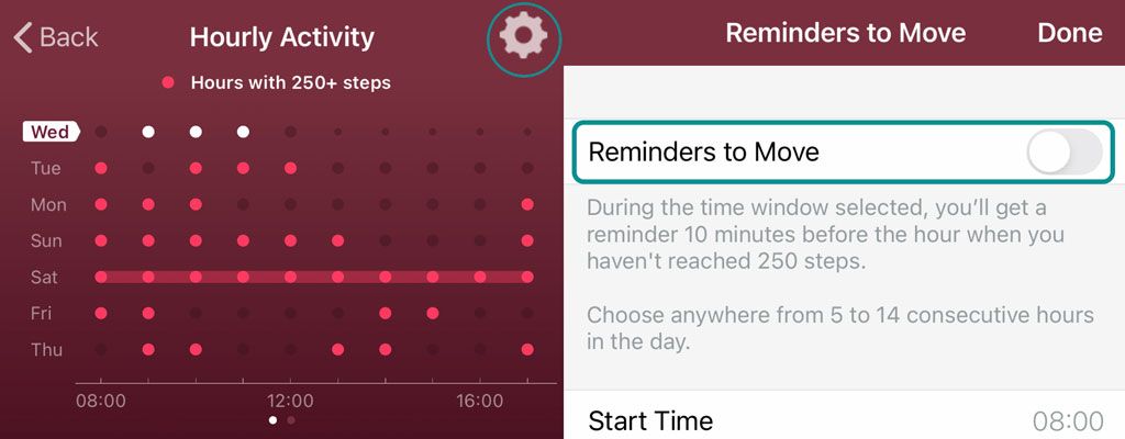 You can also change this from your online Fitbit dashboard by choosing the Settings gear icon, selecting your Fitbit device image, and locating Reminders to Move. Then turn them off.