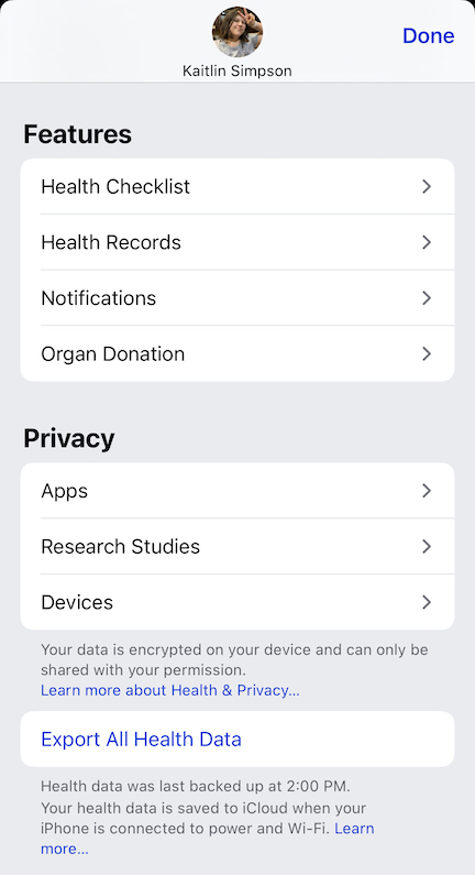 - Data from your iPhone, iPod touch, and Apple Watch.