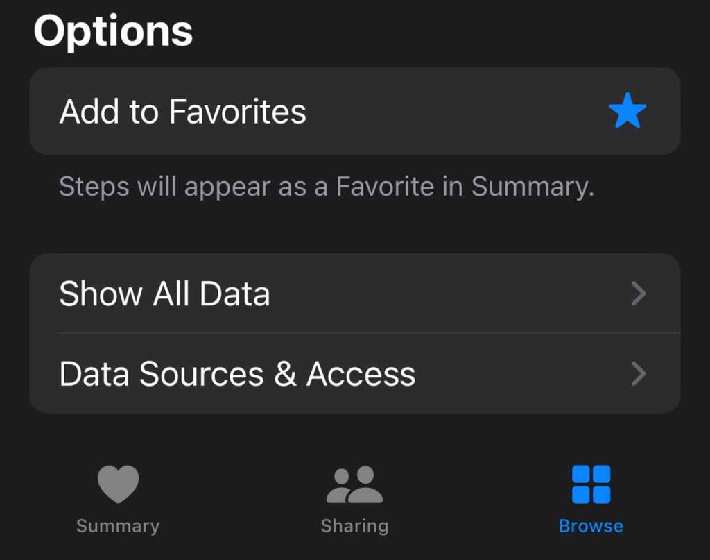You can also remove steps your iPhone counted by choosing Data Sources & Access instead of Show All Data from the Steps options.