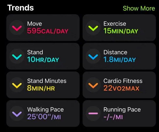 - Tap Show More to get more information on your fitness trends. You may see items that need more data to show you a trend.