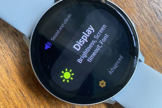 - Open the Settings on your Galaxy Watch by scrolling down on the home screen