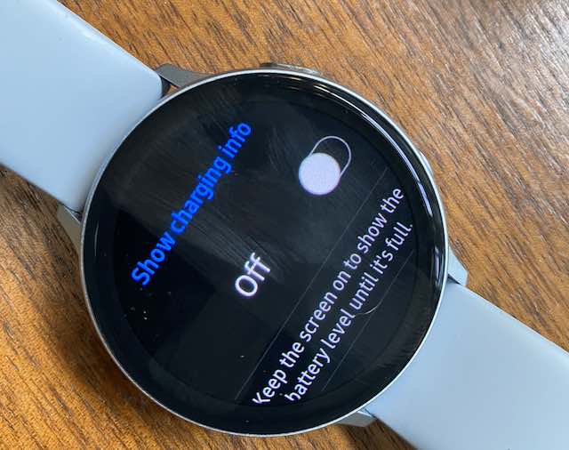 This display setting on your Samsung Galaxy Watch is designed to keep the screen on to show the battery level until it’s full. You can disable this setting when charging the watch during night hours to keep the sepals dim on the watch.