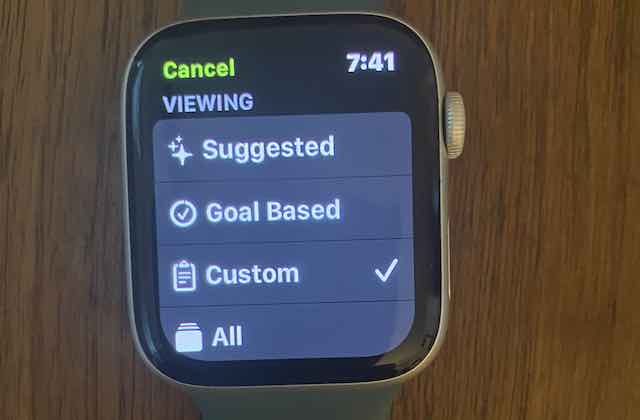 For older watchOS versions (watch 0S8 and below), change the workout view following these steps: