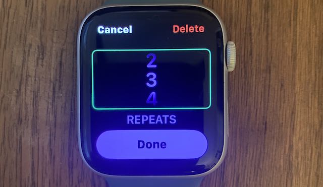 - Start by tapping on the 9x next to Repeat to change the number of cycles.