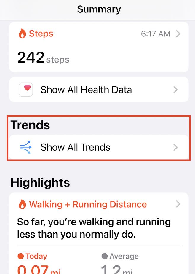 How to enable or disable Trend Notifications in iOS 15 Health app