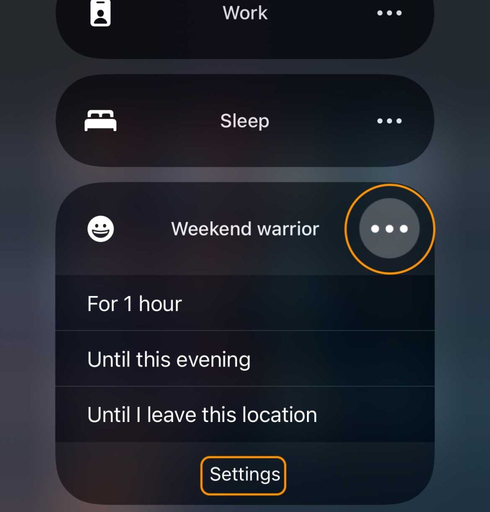 - Select the Focus that you want to update. When using Control Center, tap the More Button (three dots) and choose Settings.