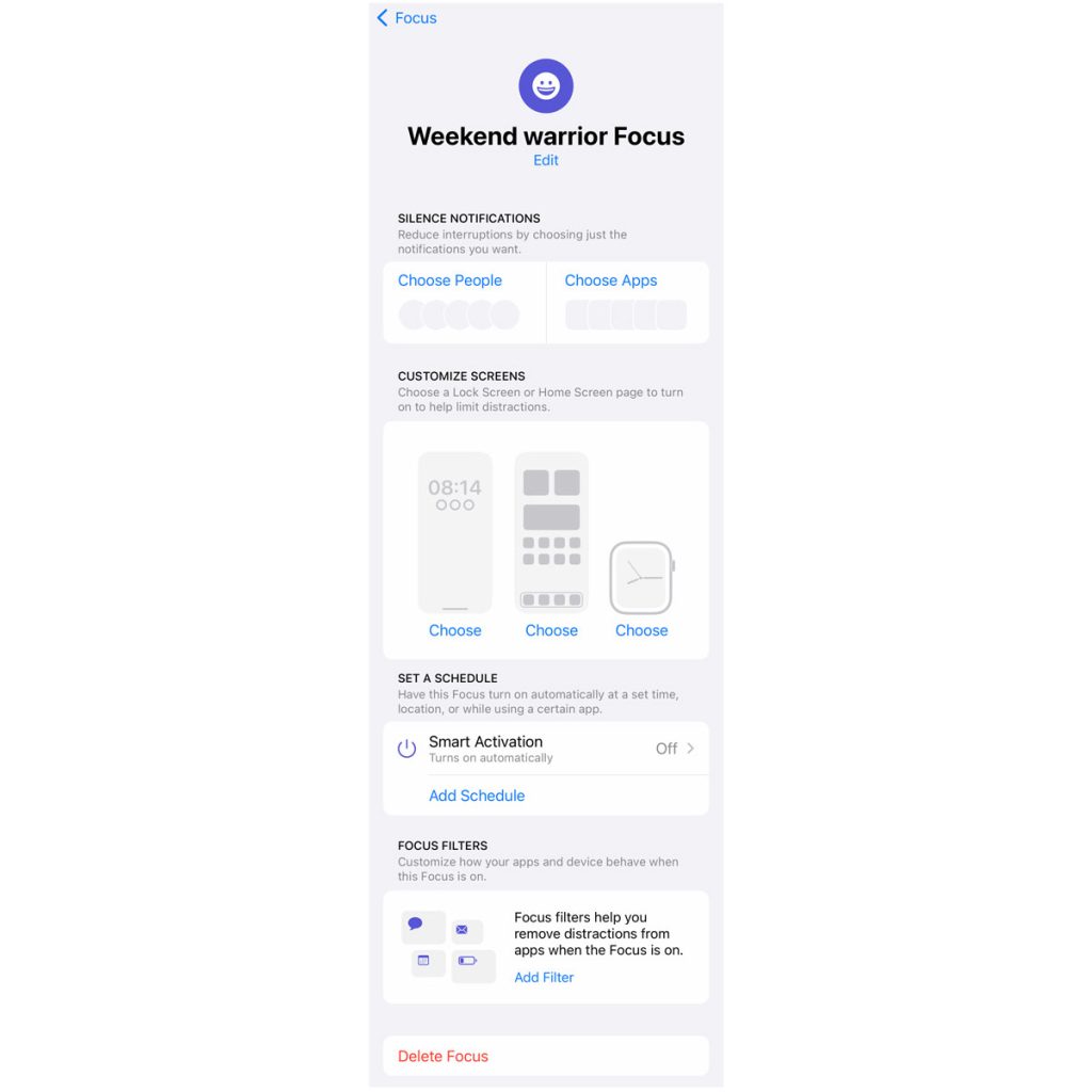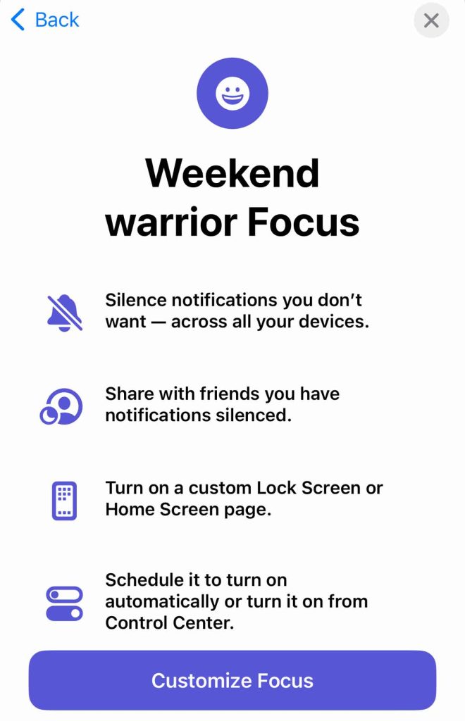 - Tap your Focus name (i.e., Weekend warrior) and turn it on.