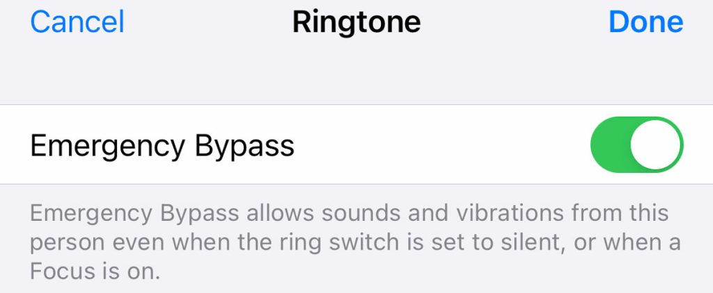 There’s another option for you to set up in case of emergencies using the Contacts app that always works, even when you have a Focus on.