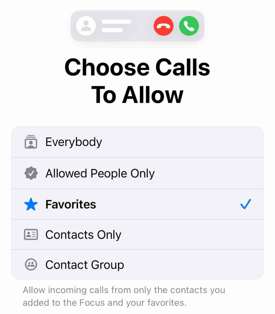 - For people, choose which contacts you want to allow calls from. You can choose everybody, allowed people, Favorites, Contacts only, or a Contact Group. Tap Done to save.