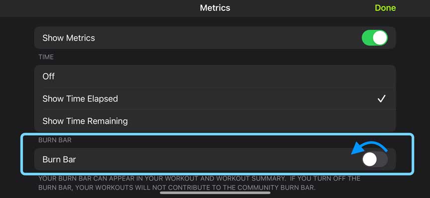 Turn off Apple Fitness+’s Burn Bar in Fitness+ workout settings so you can focus on your own fitness goals and smash your personal best scores!
