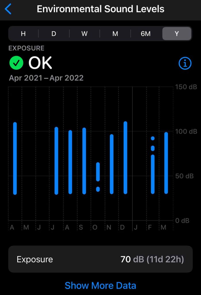 From here, tap Headphone Audio Levels or Environmental Sound Levels and review your average decibel levels, your exposure time, decibel range, and a handful of other useful stats.