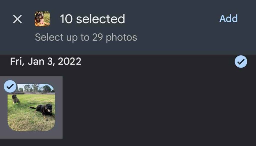 - On your phone, select the photos you want to add. Then, choose the Add button.