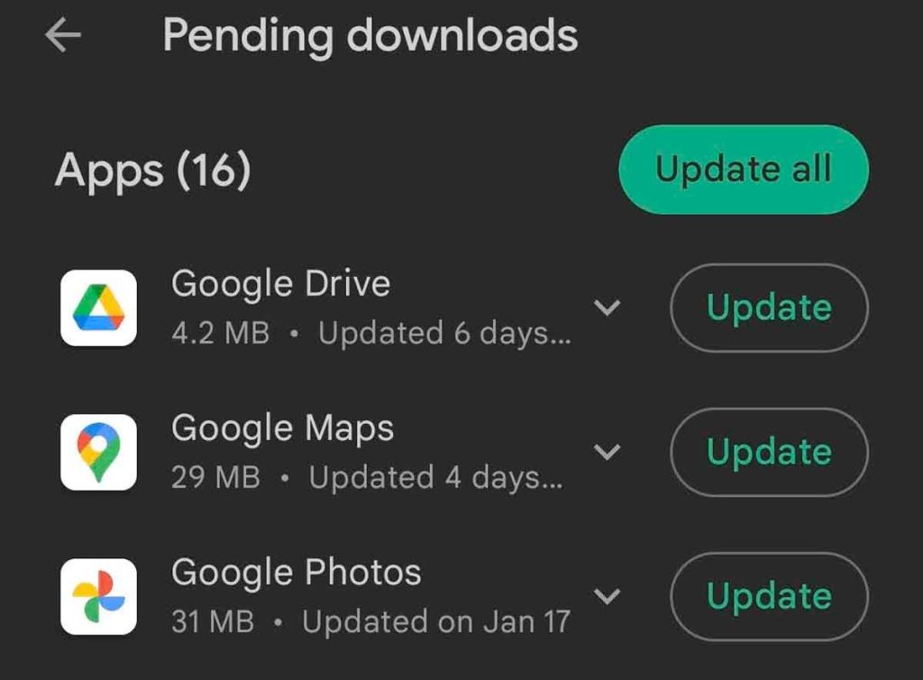 - You can also scroll down and tap Manage apps, then select Update All or locate Google Photos and update it.