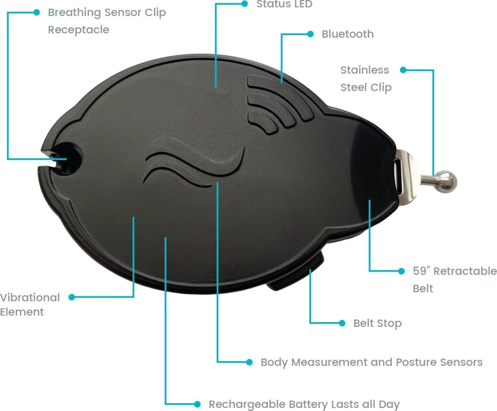 For example, it can passively monitor your breathing and posture and alert you to less-than-ideal breathing patterns or slouching.
