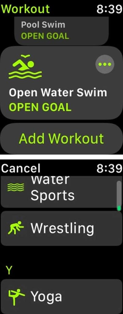 - If you don’t see it, continue scrolling and tap Add Workout.