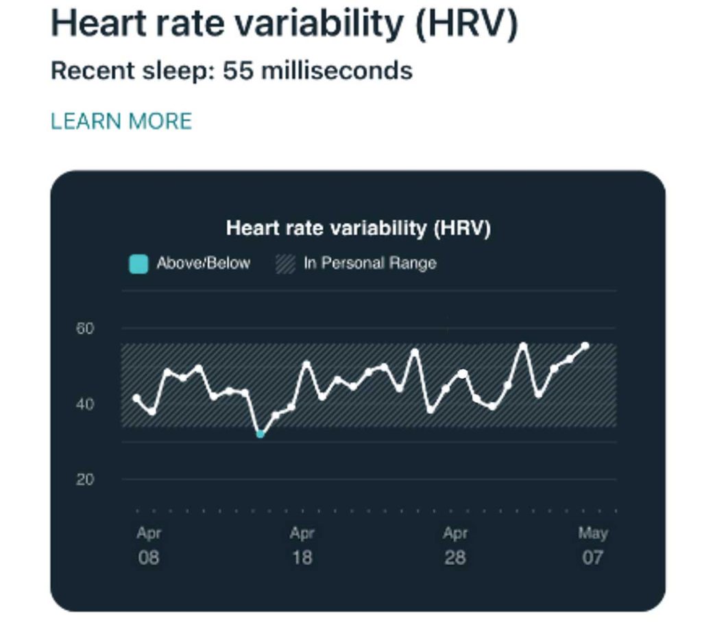 - See a graph of your nightly average heart rate variability in milliseconds.
