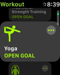 - By default, Yoga is an open goal activity. If you want to set up your practice by time or calories, tap the three-dot More button and set your preferences.