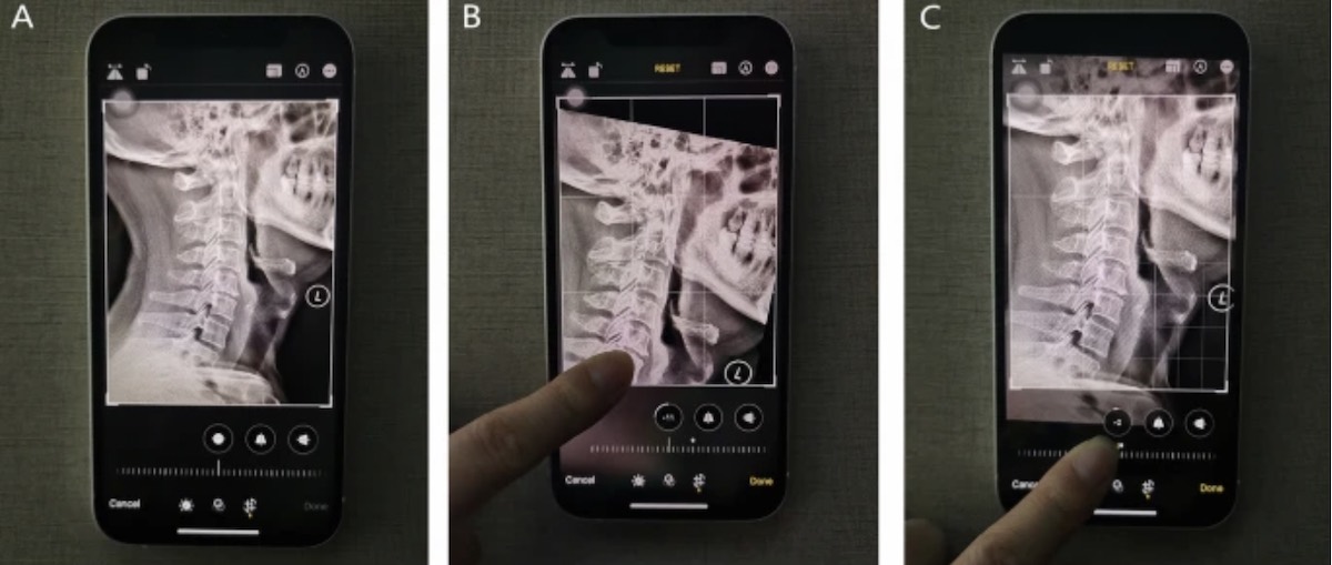 The researchers found that using the iPhone’s intrinsic photo edit function was accurate, reliable, fast, and convenient when measuring cervical sagittal parameters.
