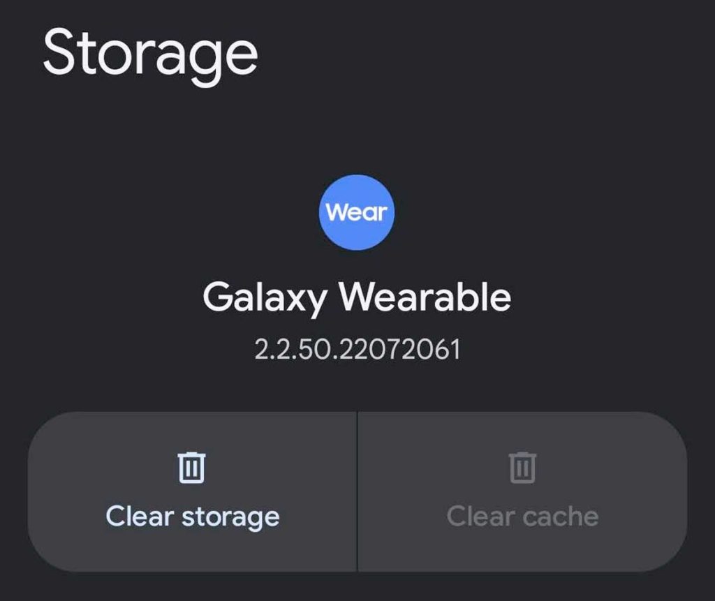 Clearing out Galaxy Wearable cache data may solve this problem. Cache files are temporary, so deleting them does not impact your data.