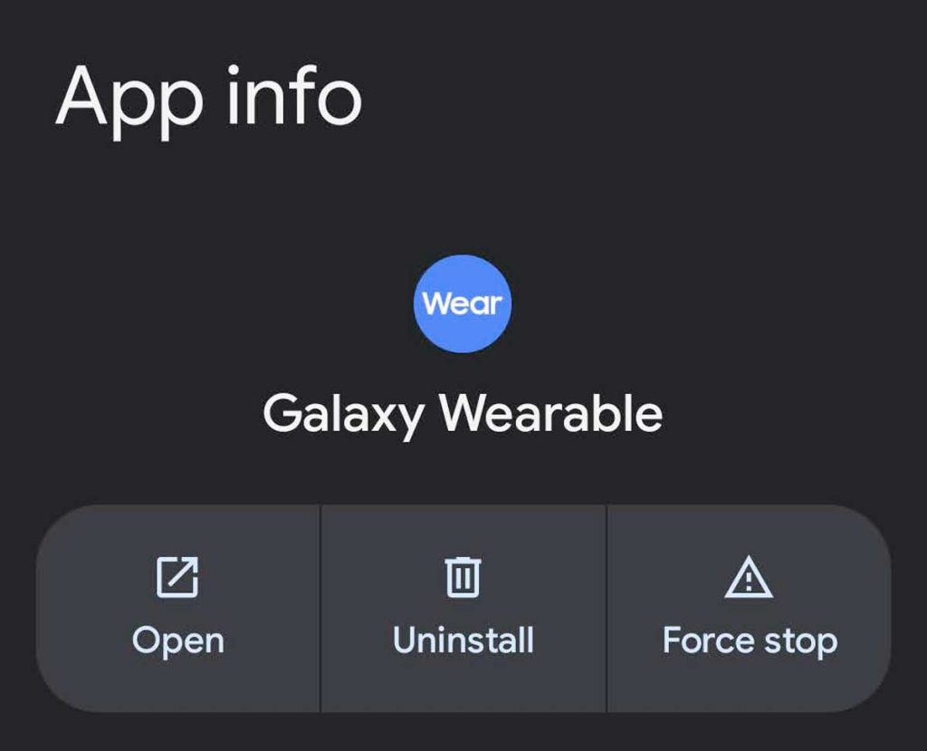 If you cannot uninstall the Galaxy Wearable app, clear the app’s data via Settings > Apps > Storage> Clear storage.