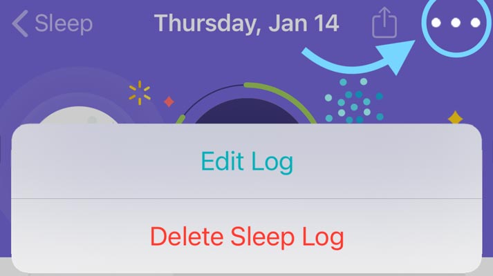 - Scroll down and tap on a specific day’s sleep log to edit or delete it.