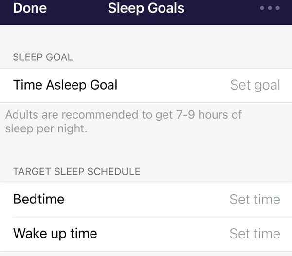Setting a sleep schedule and goal can help the app analyze your sleep trends and if you’re on target.
