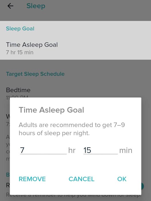 - Choose to Remove sleep goal, target bedtime, or target wakeup time. To remove all three, repeat step 4 for each.