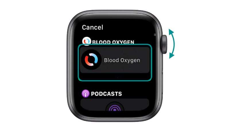 - Turn the Digital Crown and scroll through the list and choose Blood Oxygen to add it