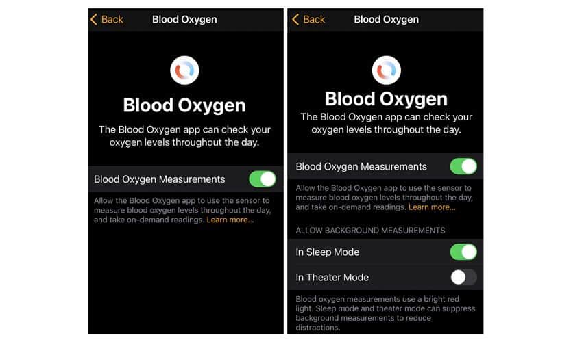- Toggle on Blood Oxygen Measurements