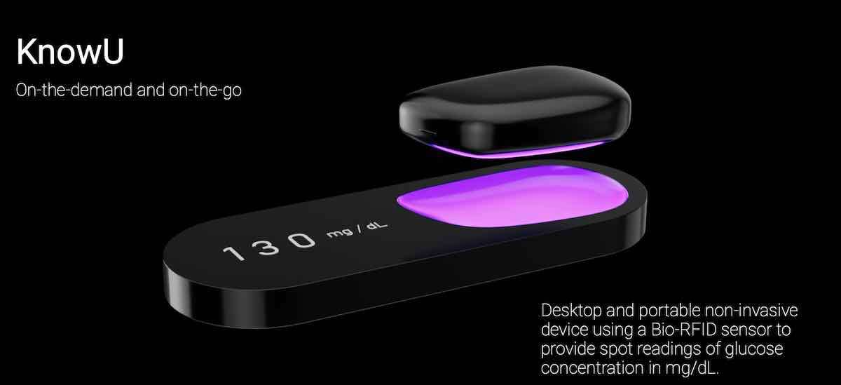 Know Labs (ticker: KNWN), a publicly-traded company, is developing a palm-reading blood glucose device called the KnowU and a wristband called the UBand that allows users to check their blood glucose levels through an app.