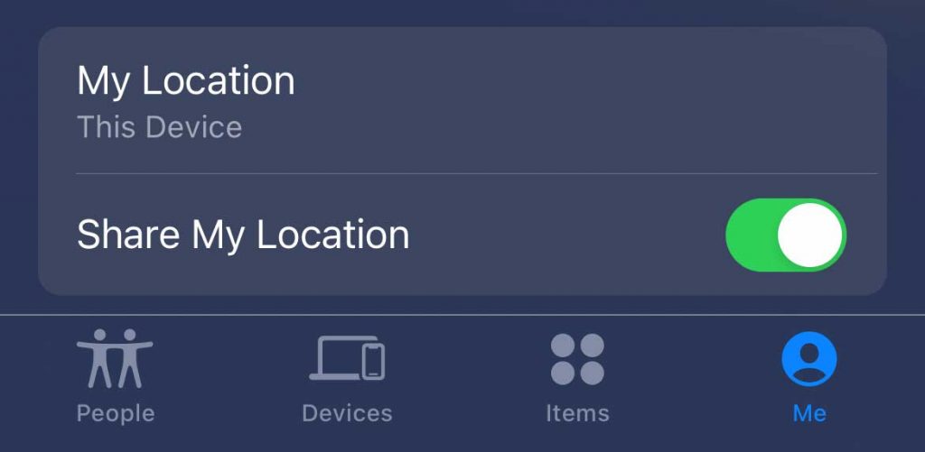 Then, open your iPhone’s Find My app and turn on Share My Location.