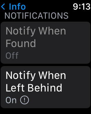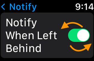 - Scroll down using your finger or the watch’s Digital Crown and tap Notify When Left Behind.