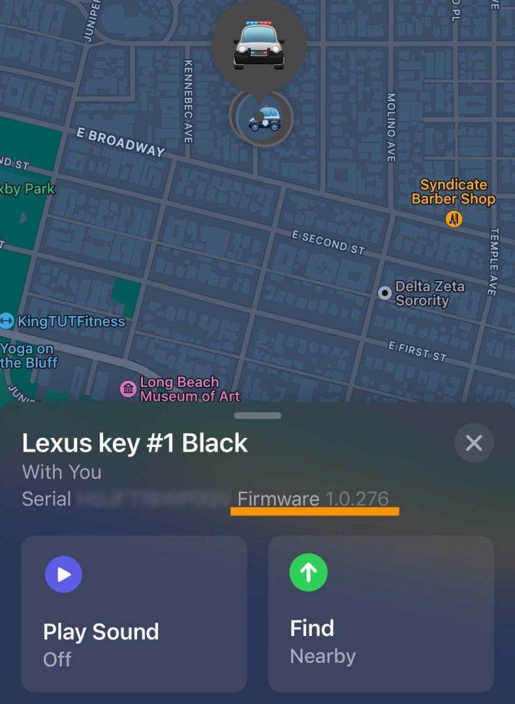 - Then, choose your AirTagged item. Then, tap on the blank space next to the AirTag’s name to review its firmware version.