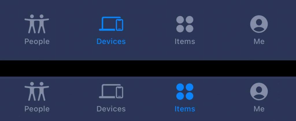 - Choose the Devices (for watches, iPhones, Macs, or iPad) or Items (for AirTags and Find My Network supported products) tab at the bottom.