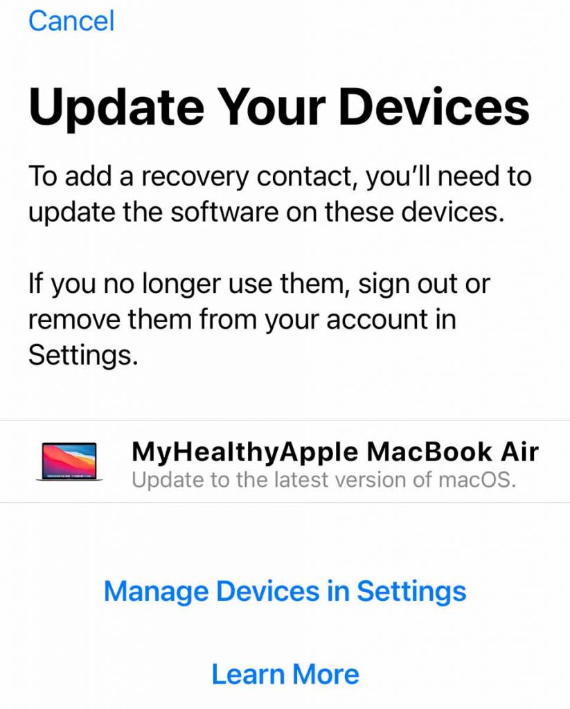 At this time, you can only set up this feature if all your Apple devices using your Apple ID run the latest version of iOS, iPadOS, and macOS. For most of us, that’s a tall order (especially for folks that own older Macs!)
