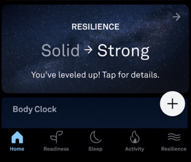 In the Oura App, your resilience is categorized into 5 levels: Exceptional, Strong, Solid, Adequate, and Limited.