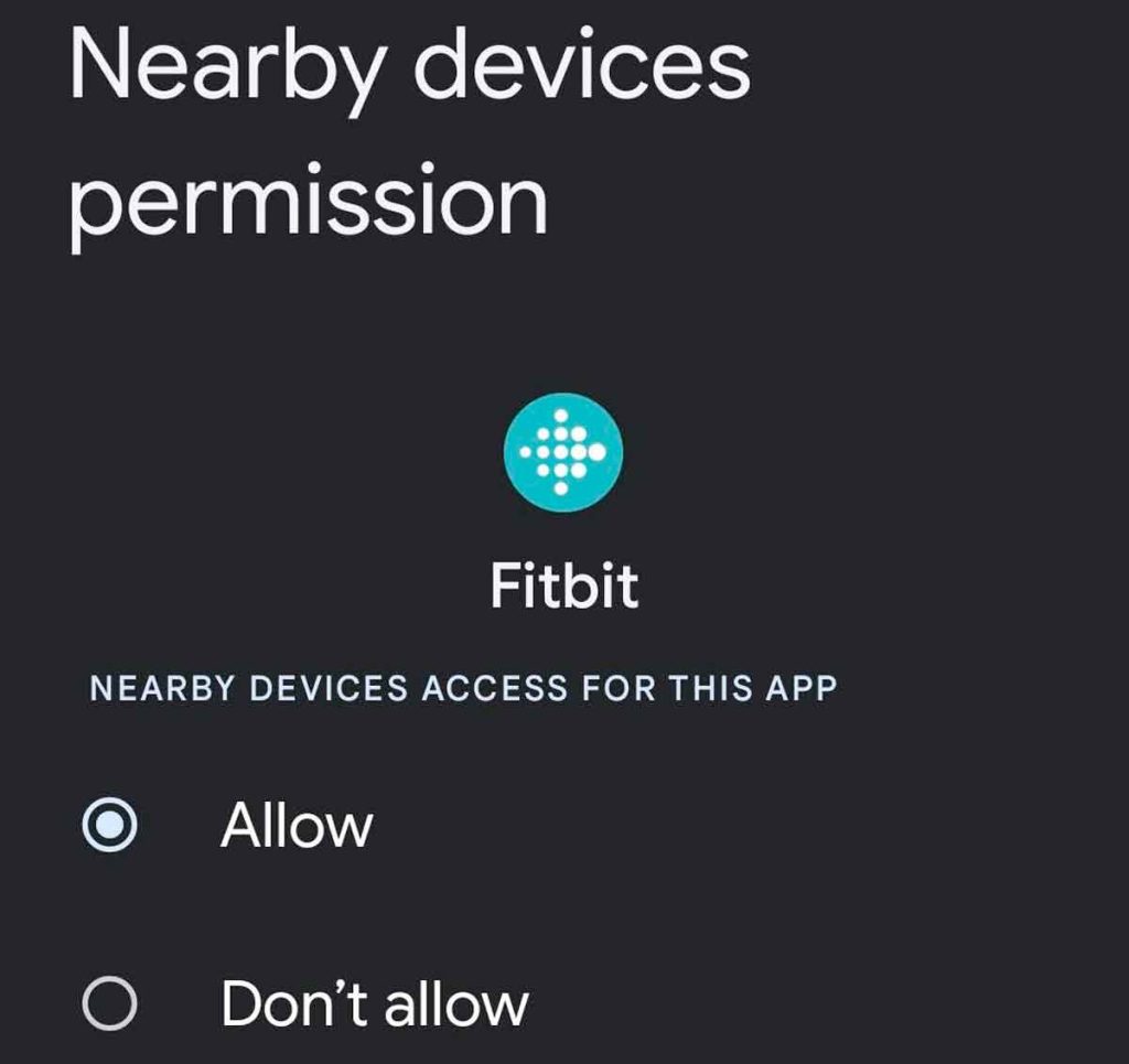 - Grant the Fitbit app permission to your location and nearby devices.