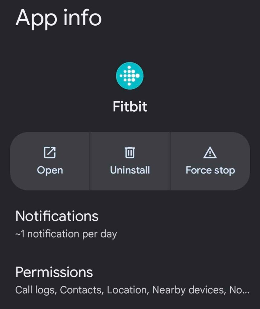You can also force stop an app using your phone’s Settings app > Apps > Fitbit app > Force stop.